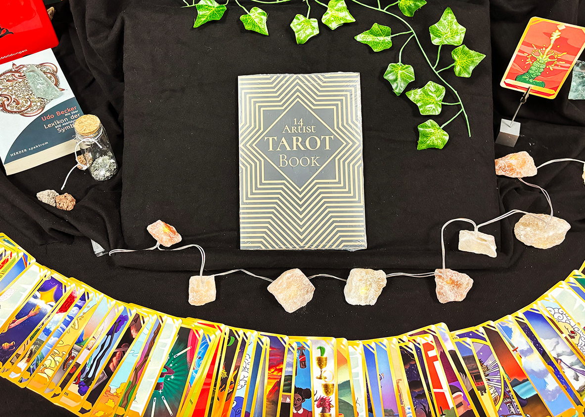 -Live-Experience: Besucher:innen mischten Visuals zu Live-Musik oder erhielten einen Blick in die Zukunft durch illustrierte Tarotkarten.
